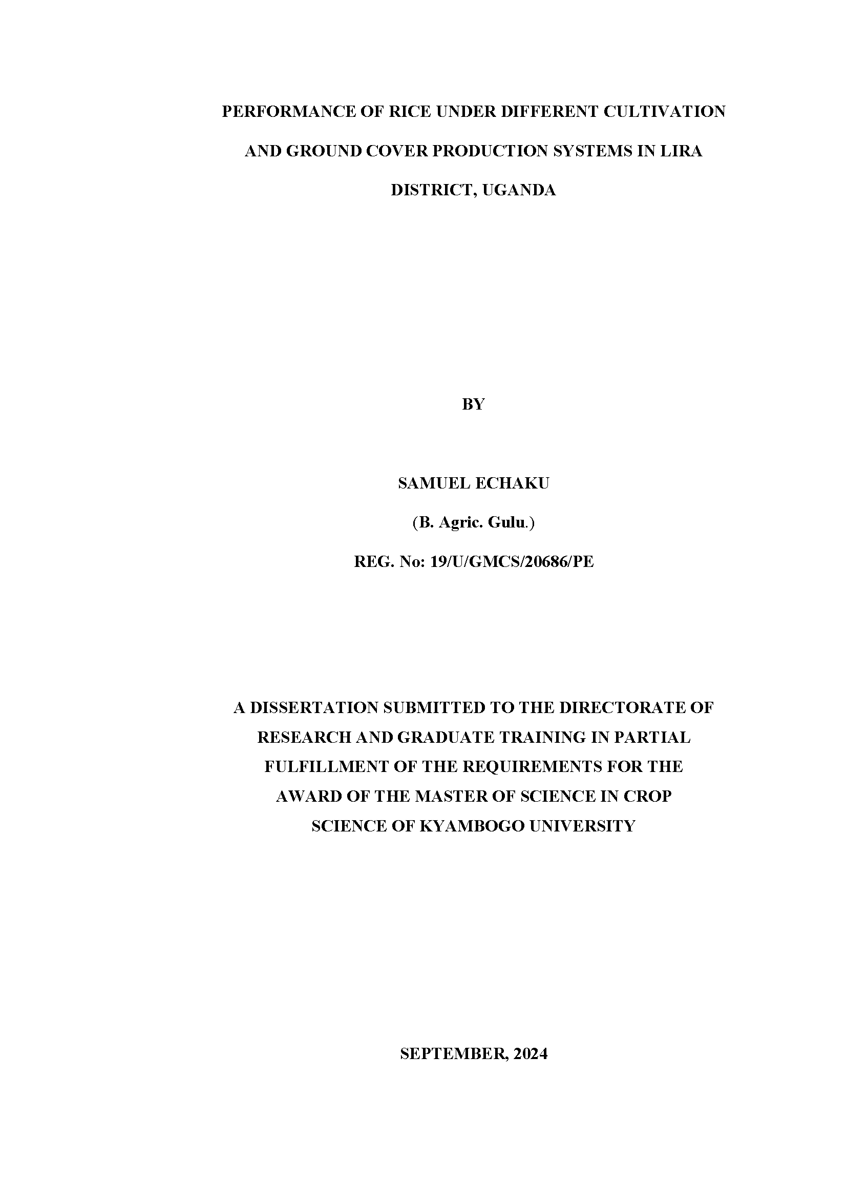 Echaku, S. (2024). Performance of rice under different cultivation and ground cover production systems in Lira district, Uganda