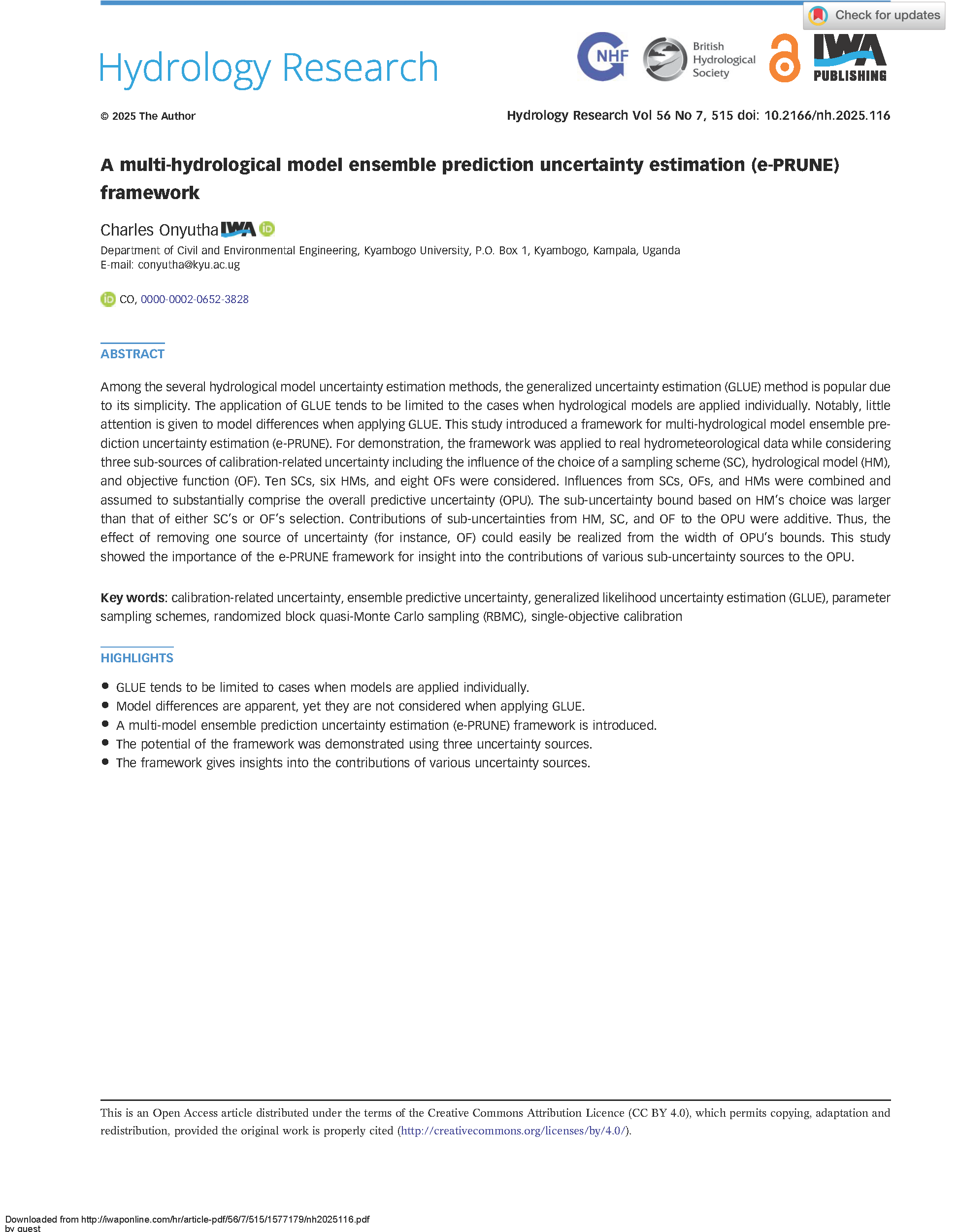 Onyutha, C. (2025). A multi-hydrological model ensemble prediction uncertainty estimation (e-PRUNE) framework .Hydrology Research.https://doi.org/10.2166/nh.2025.116
