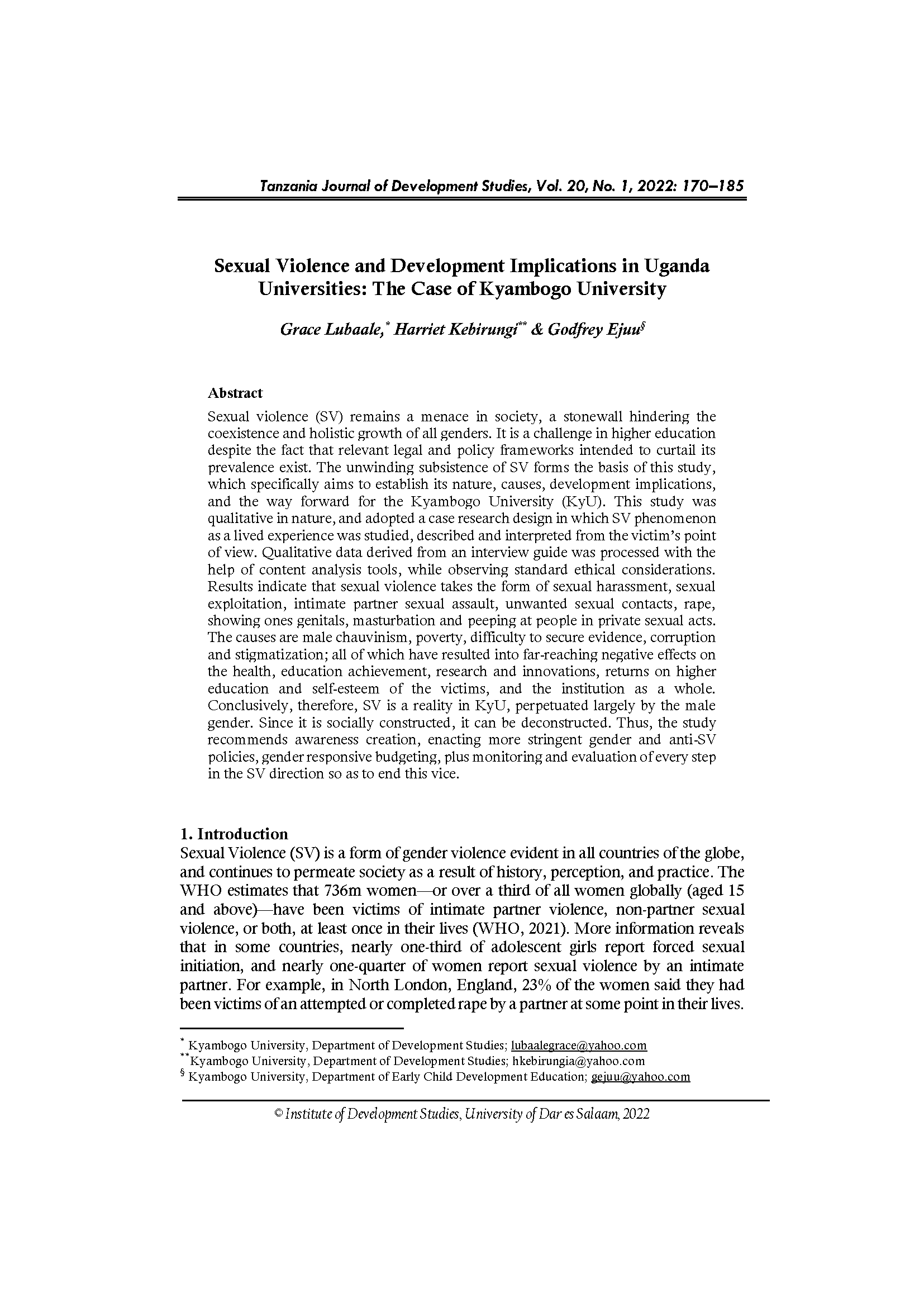 Sexual Violence and Development Implications in Uganda Universities: The Case of Kyambogo University