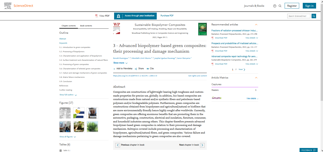 Mwesigwa, R., Nkomo, N.Z., Mwasiagi, J. I., Wanyama, A. (2021) 3 - Advanced biopolymer-based green composites: their processing and damage mechanism
