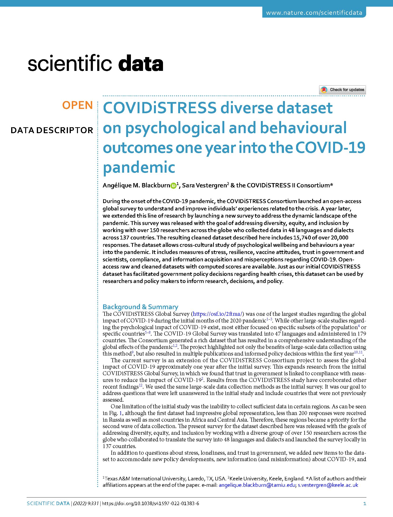 During the onset of the COVID-19 pandemic, the COVIDiSTRESS Consortium launched an open-access