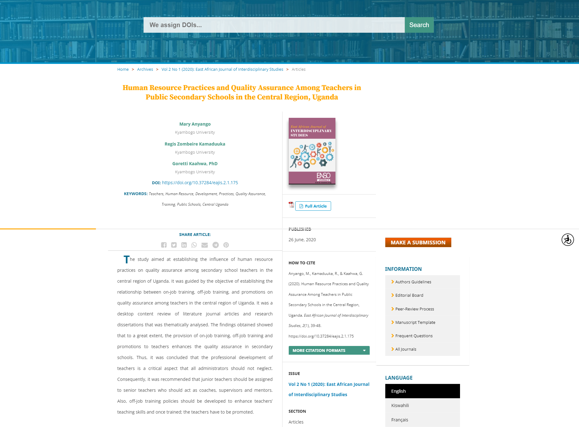 East African Journal of Interdisciplinary Studies.