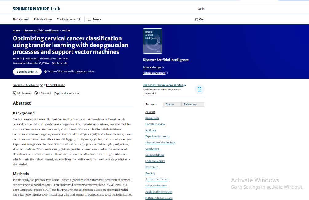 Ahishakiye, E., & Kanobe, F. (2024). Optimizing cervical cancer classification using transfer learning with deep gaussian processes and support vector machines. Discover Artificial Intelligence, 4(1), 73.