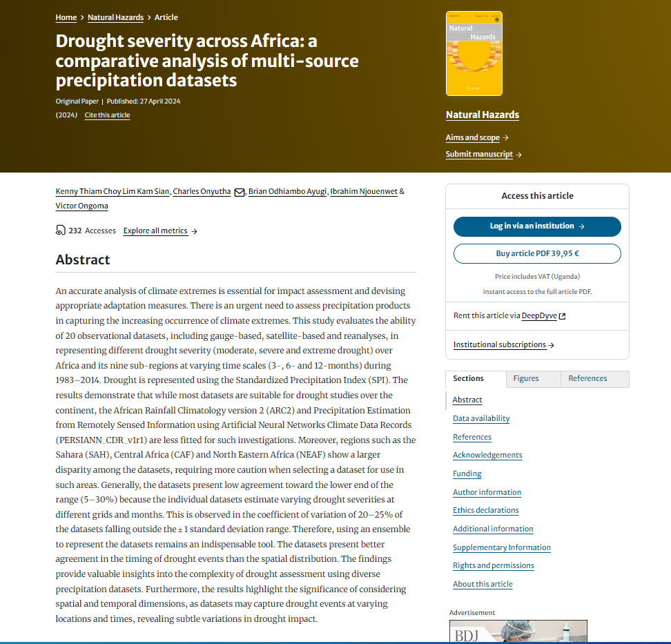 Lim Kam Sian, K.T.C., Onyutha, C., Ayugi, B.O. et al. (2024). Drought severity across Africa: a comparative analysis of multi-source precipitation datasets. Nat Hazards. https://doi.org/10.1007/s11069-024-06604-2