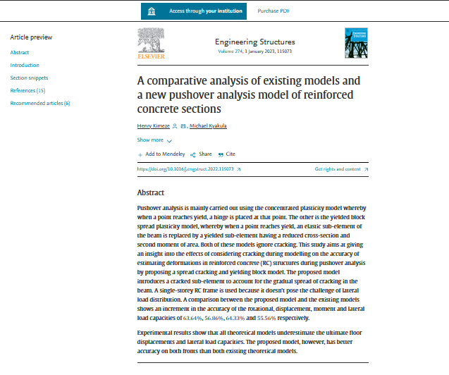 Kimeze, H., & Kyakula, M. (2023). A comparative analysis of existing models and a new pushover analysis model of reinforced concrete sections. Engineering Structures, 274, 115073