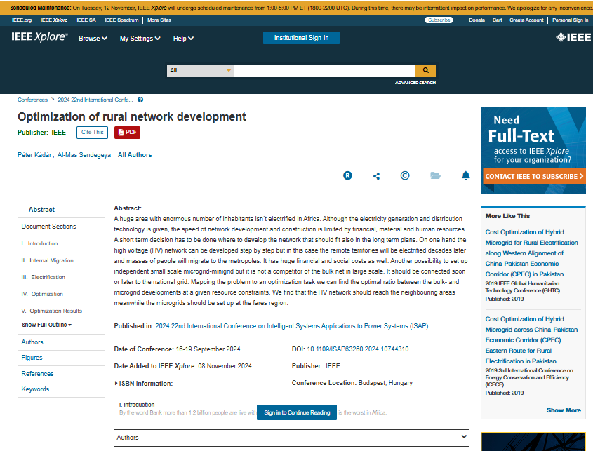 | dc.identifier.citation | Kádár, P., & Sendegeya, A. M. (2024, September). Optimization of rural network development. In 2024 22nd International Conference on Intelligent Systems Applications to Power Systems (ISAP) (pp. 1-5). IEEE. | en_US |