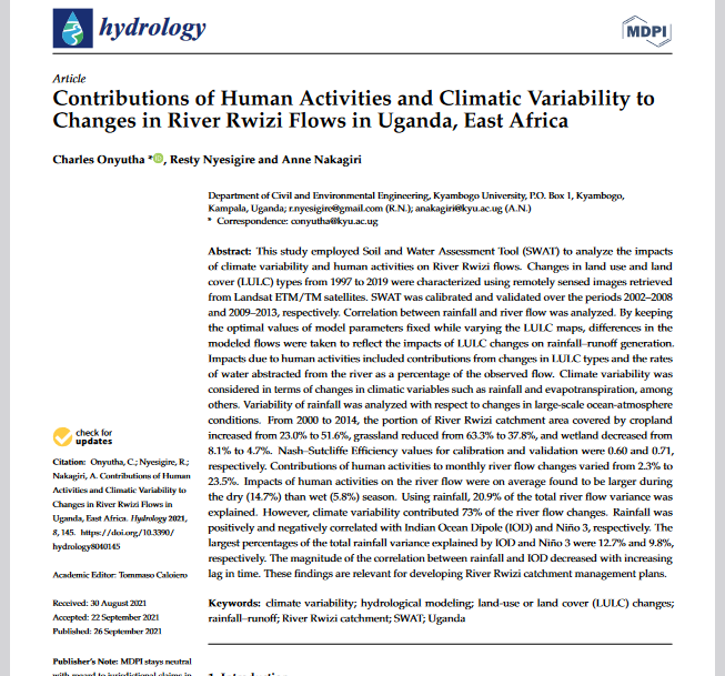 | dc.identifier.citation | Onyutha, C., Nyesigire, R., & Nakagiri, A. (2021). Contributions of human activities and climatic variability to changes in River Rwizi Flows in Uganda, East Africa. Hydrology, 8(4), 145. | en_US |